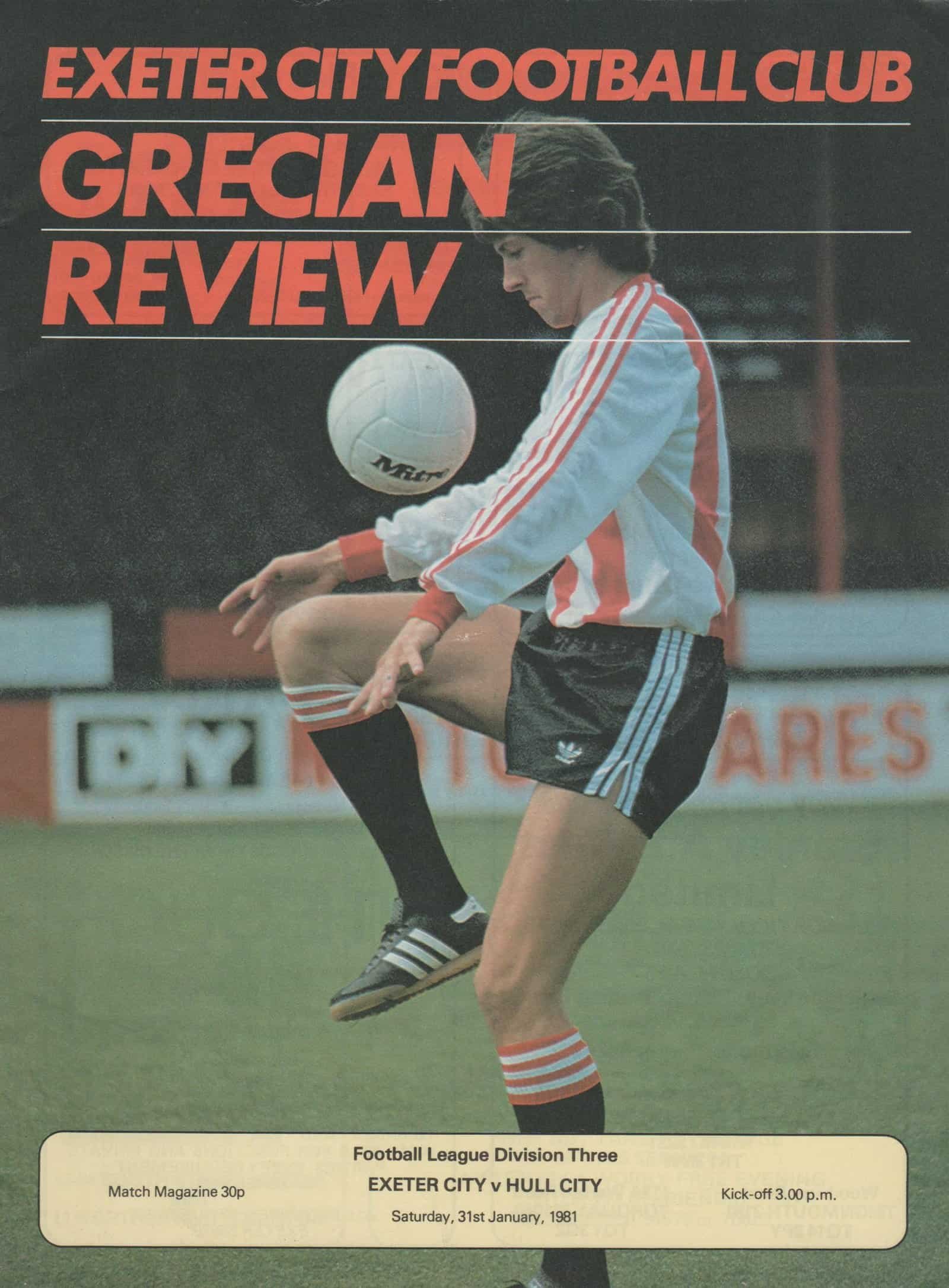 Match: Exeter City v Hull City Competition: League Division 3 Date: 31-Jan-1981 Comments: Rating: 4 Condition: Very good Weight in grams: 60