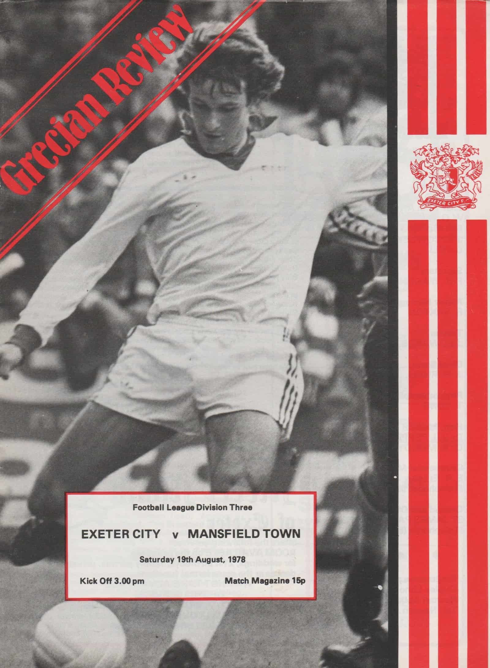 Match: Exeter City v Mansfield Town Competition: League Division 3 Date: 19-Aug-1978 Comments: Rating: 4 Condition: Very good Weight in grams: 60