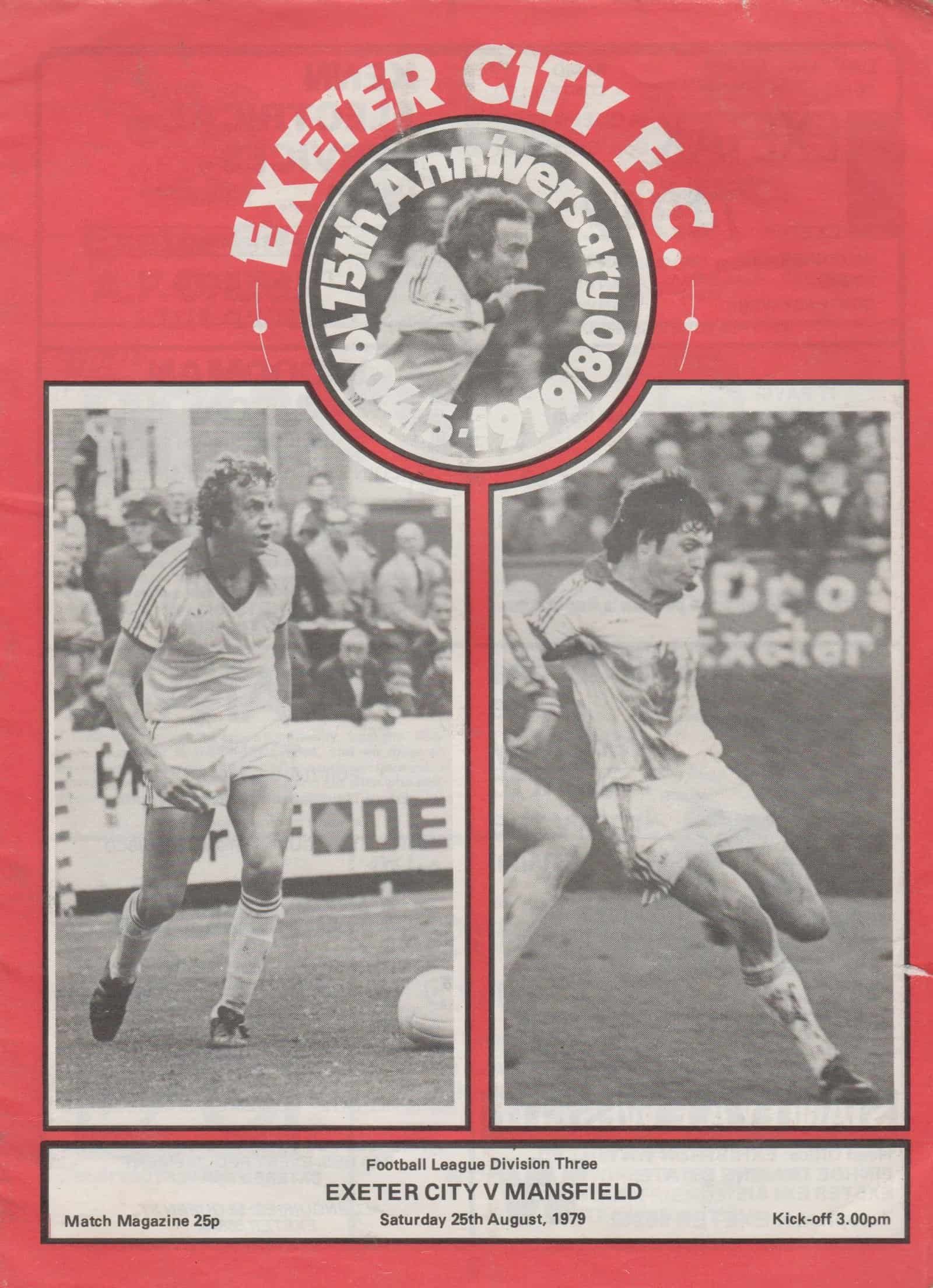 Match: Exeter City v Mansfield Town Competition: League Division 3 Date: 25-Aug-1979 Comments: Rating: 3 Condition: Corner turn, tear on edge of cover Weight in grams: 60