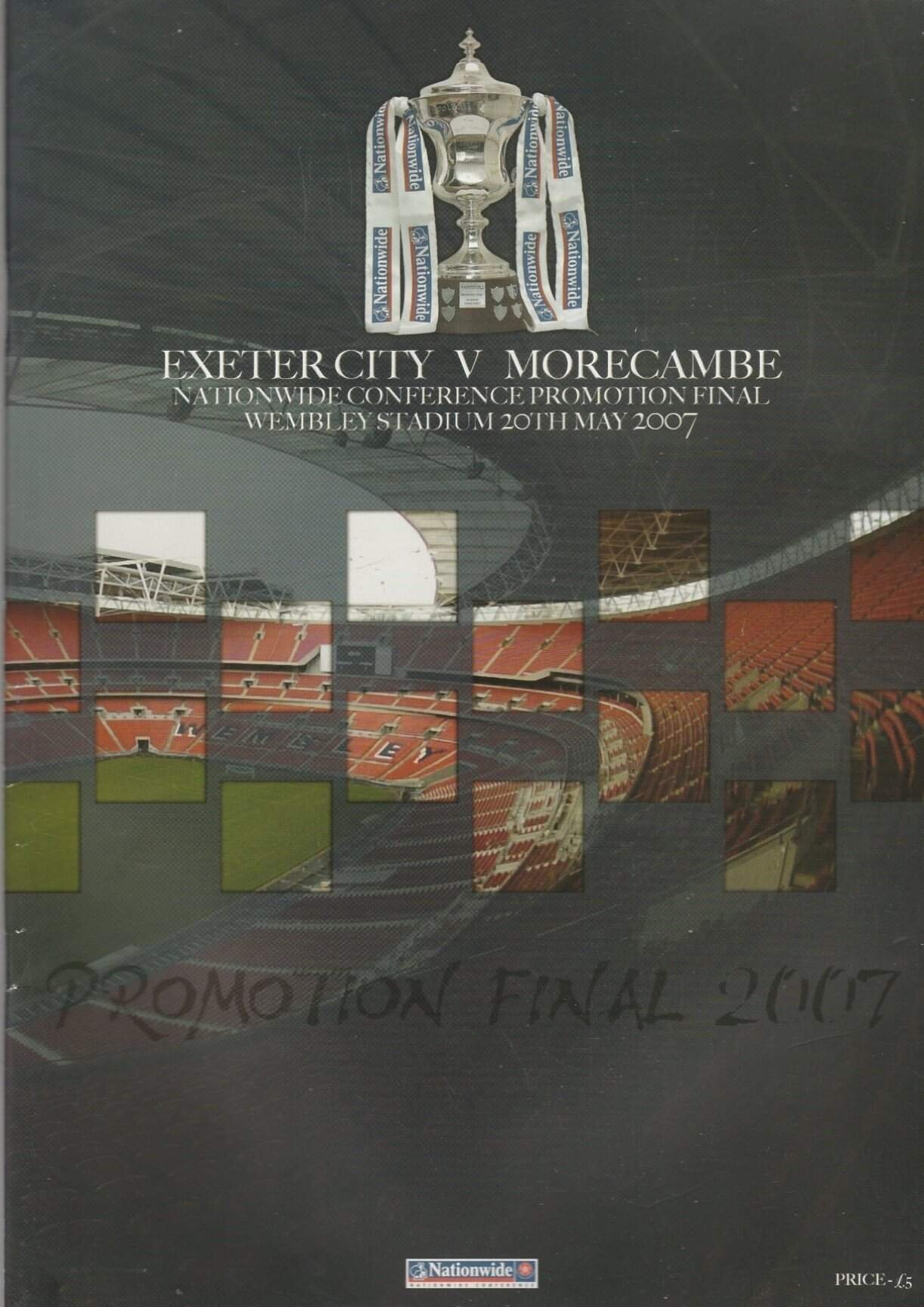 Match: Exeter City v Morecambe Competition: Nationwide Conference Play off Final Date: 20-May-2007 Comments: Rating: 4 Condition: Good, light handling wear on edge of cover Weight in grams: 400