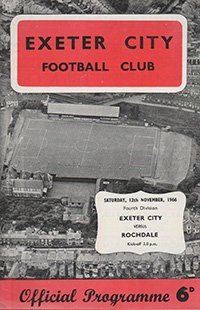 Match: Exeter City v Rochdale Competition: League Division 4 Date: 12-11-1966 Comments: Rating: 4 Condition: Very good Weight in grams: 40