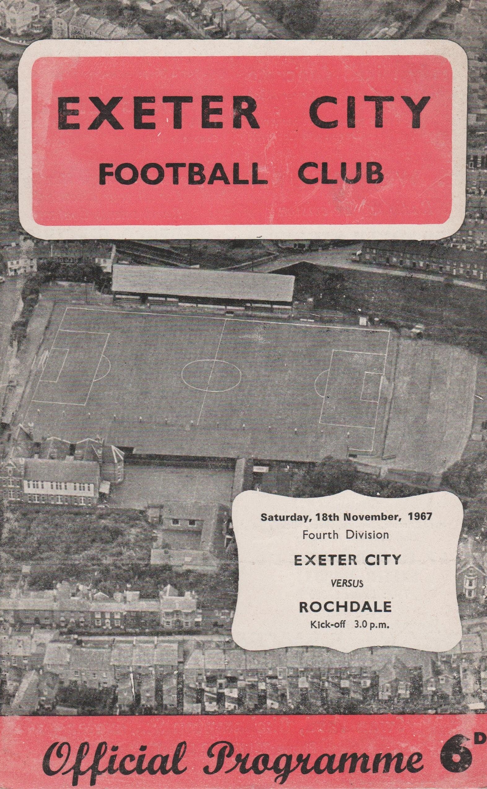 Match: Exeter City v Rochdale Competition: League Division 4 Date: 18-11-1967 Comments: Rating: 4 Condition: Very good Weight in grams: 40