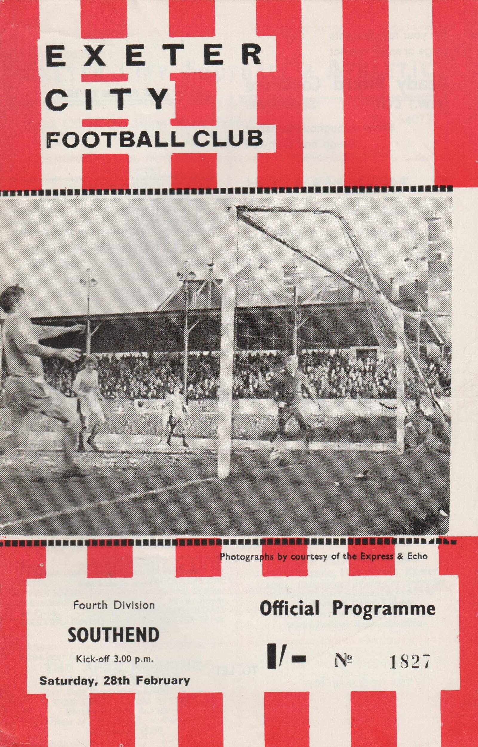 Match: Exeter City v Southend United Competition: League Division 4 Date: 28-Feb-1970 Comments: Rating: 4 Condition: Very good Weight in grams: 40