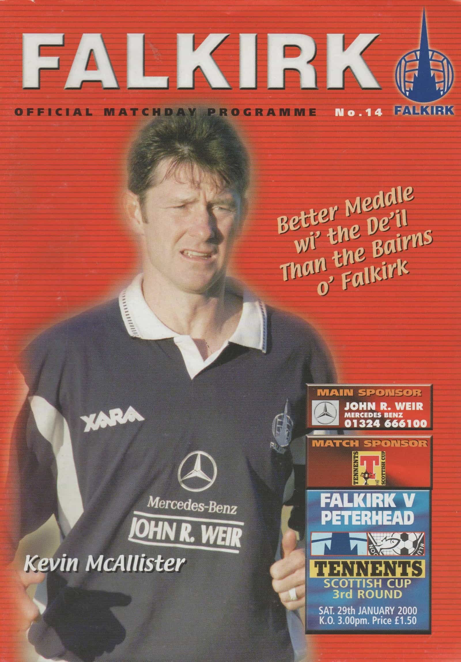 Match: Falkirk v Peterhead Competition: Scottish Cup 3rd Round Date: 29-Jan-2000 Comments: Rating: 4 Condition: Very good Weight in grams: 40