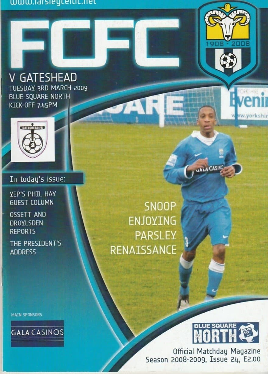 Match: Farsley Celtic v Gateshead Competition: Blue Square North Date: 03-Mar-2009 Comments: Rating: 4 Condition: Very good Weight in grams: 120