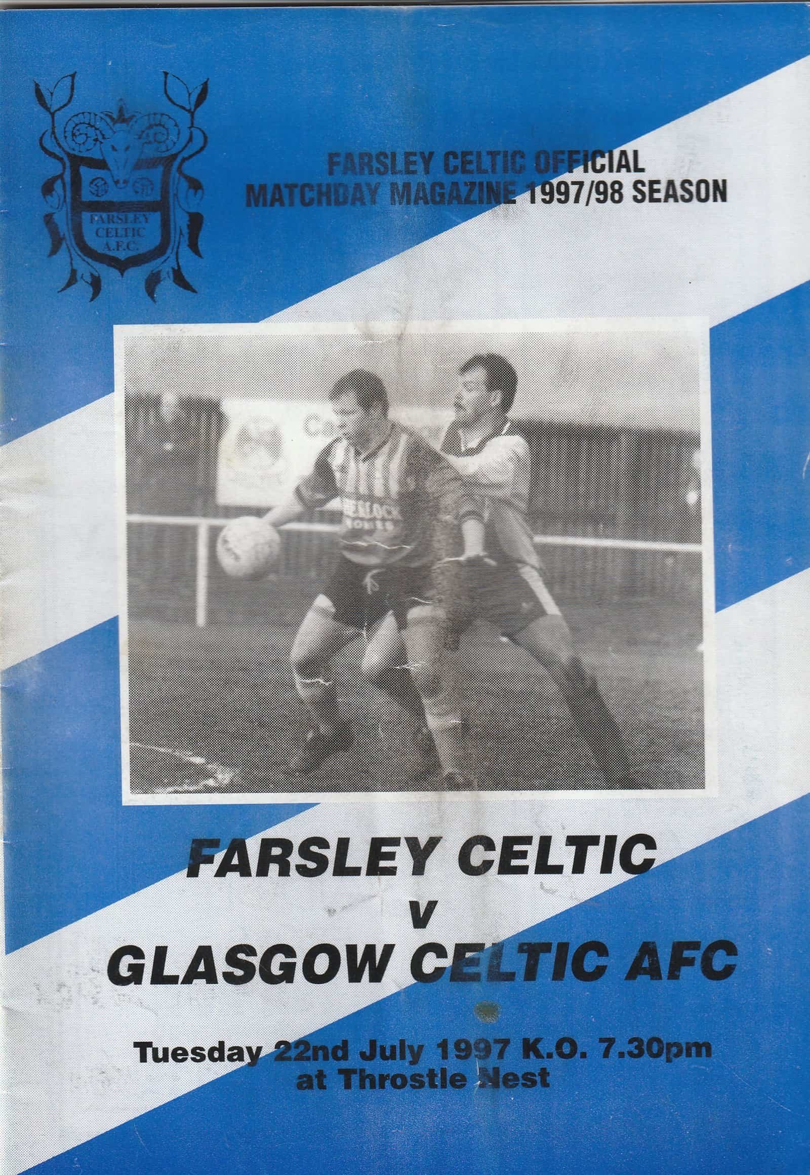 Match: Farsley Celtic v Glasgow Celtic Competition: Friendly Date: 22-Jul-1997 Comments: Rating: 3 Condition: Soiling on cover Weight in grams: 120