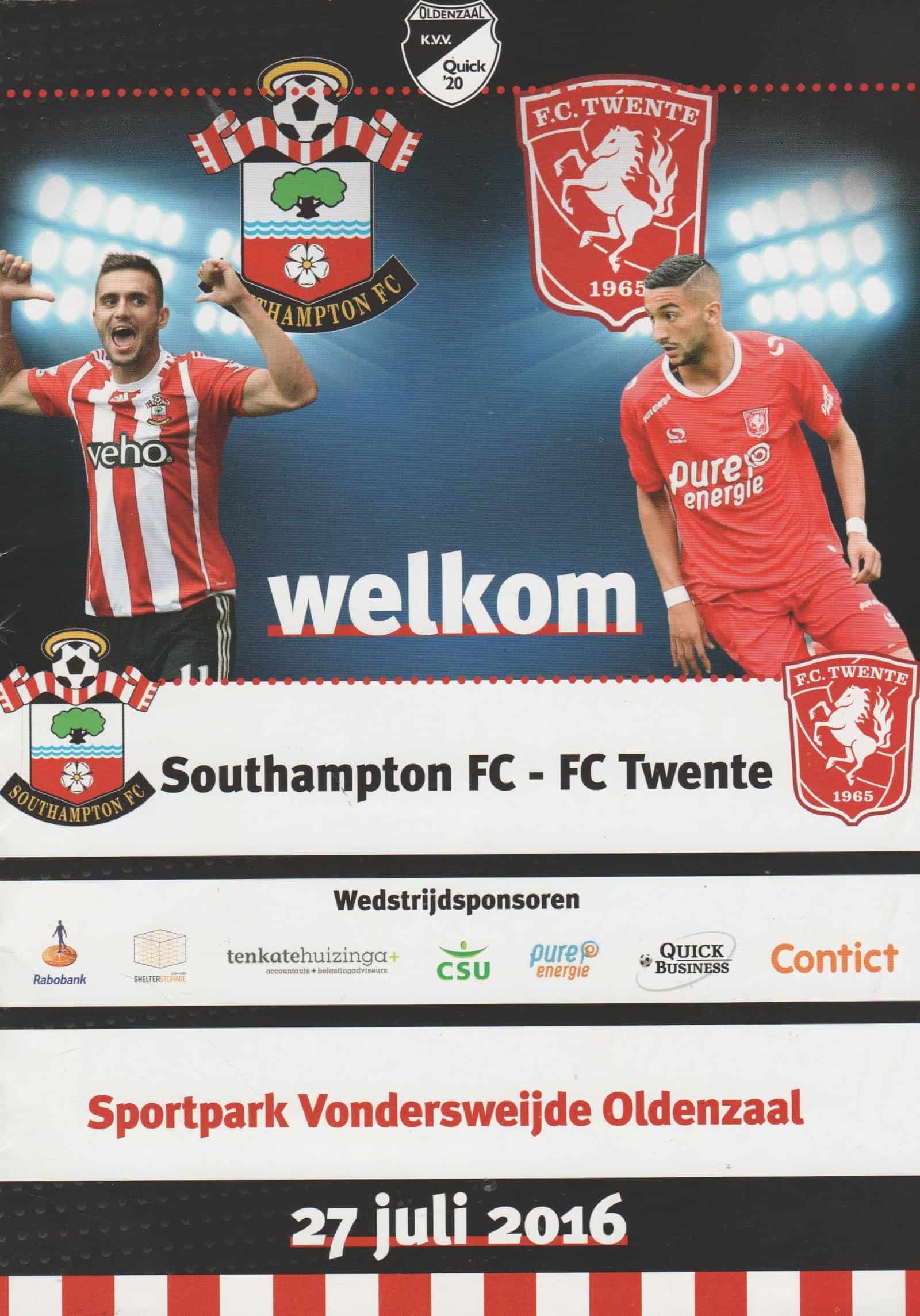 Match: FC Twente Enschede vs Southampton Competition: Friendly Date: 27-Jul-2016 Comments: Rating: 4 Condition: Very good Weight in grams: 40
