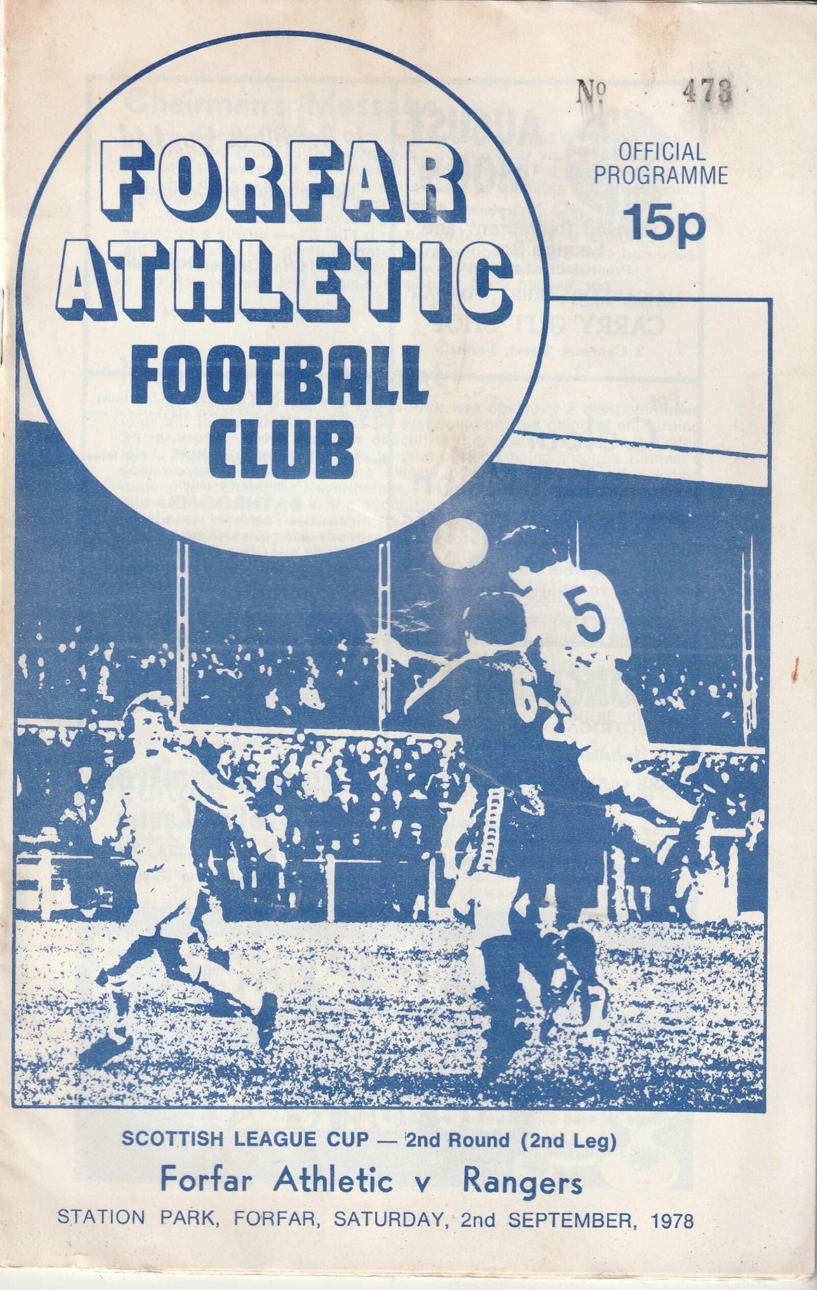 Match: Forfar Athletic v Glasgow Rangers Competition: League Cup 2nd Round 2nd leg Date: 02-Sep-1978 Comments: Rating: 3 Condition: Light soiling on top edge of cover Weight in grams: 80