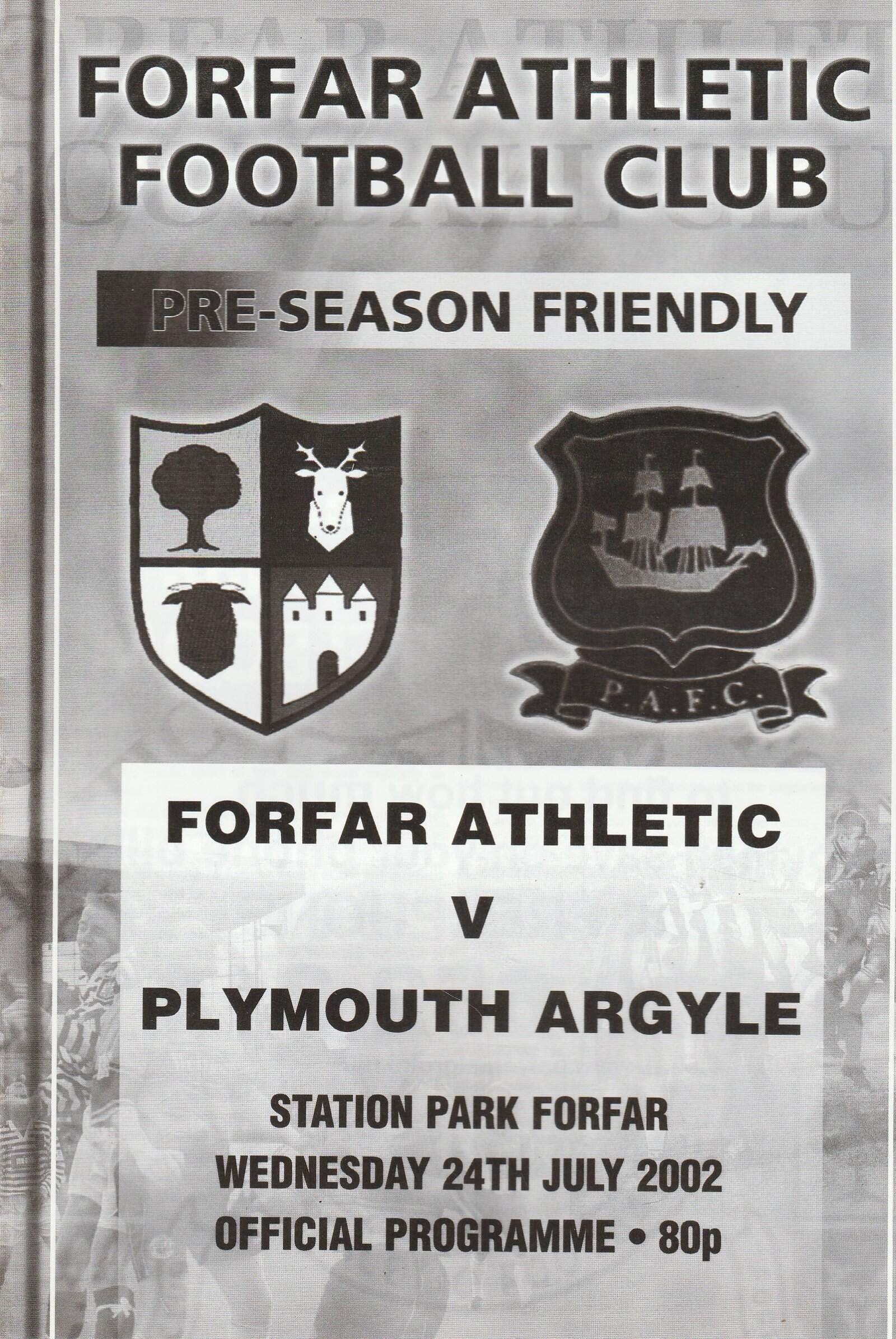 Match: Forfar Athletic v Plymouth Argyle Competition: Friendly Date: 24-Jul-2002 Comments: Rating: 4 Condition: Very good Weight in grams: 80