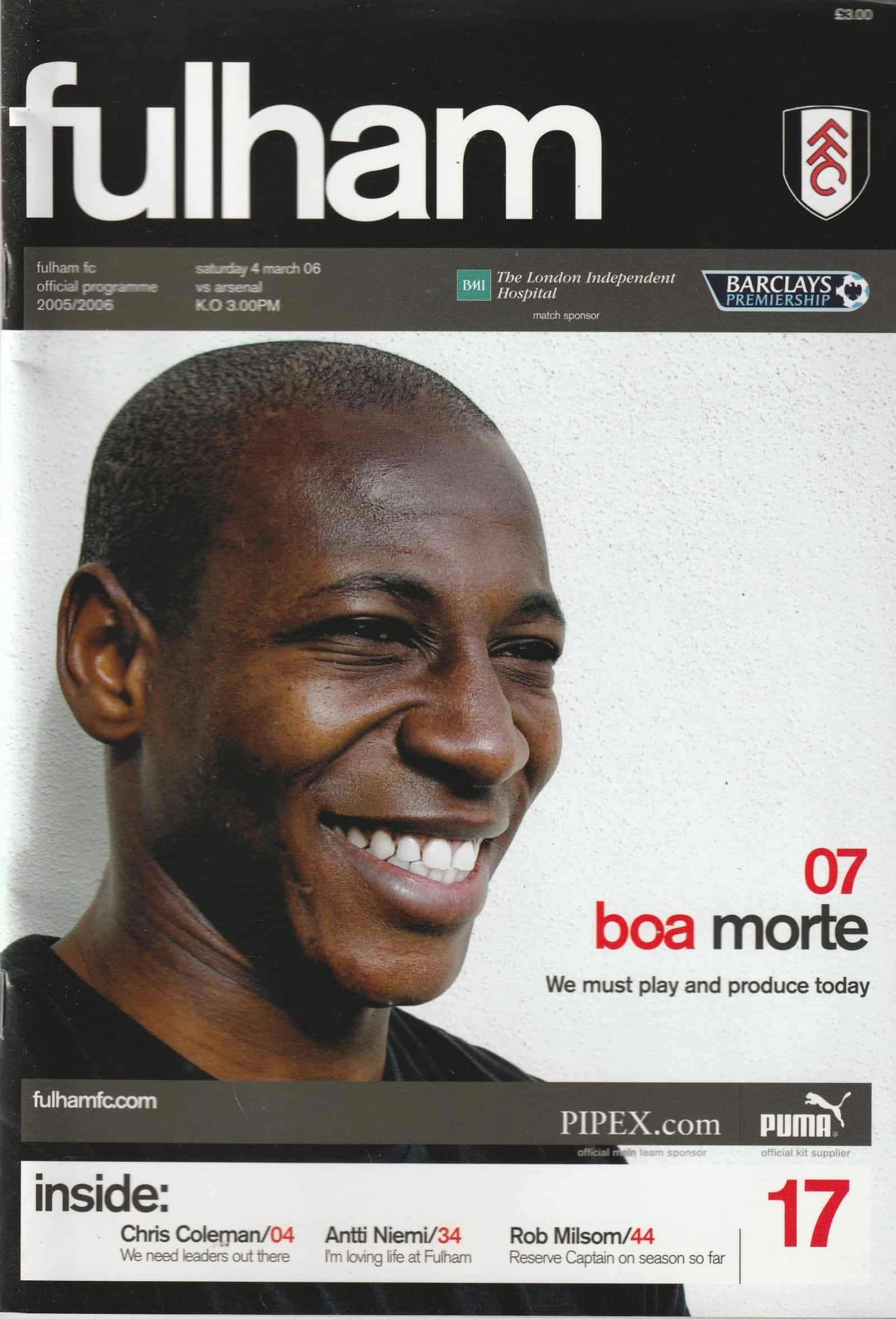 Match: Fulham v Arsenal Competition: Premier League Date: 04-Mar-2006 Comments: Rating: 4 Condition: Very good Weight in grams: 200