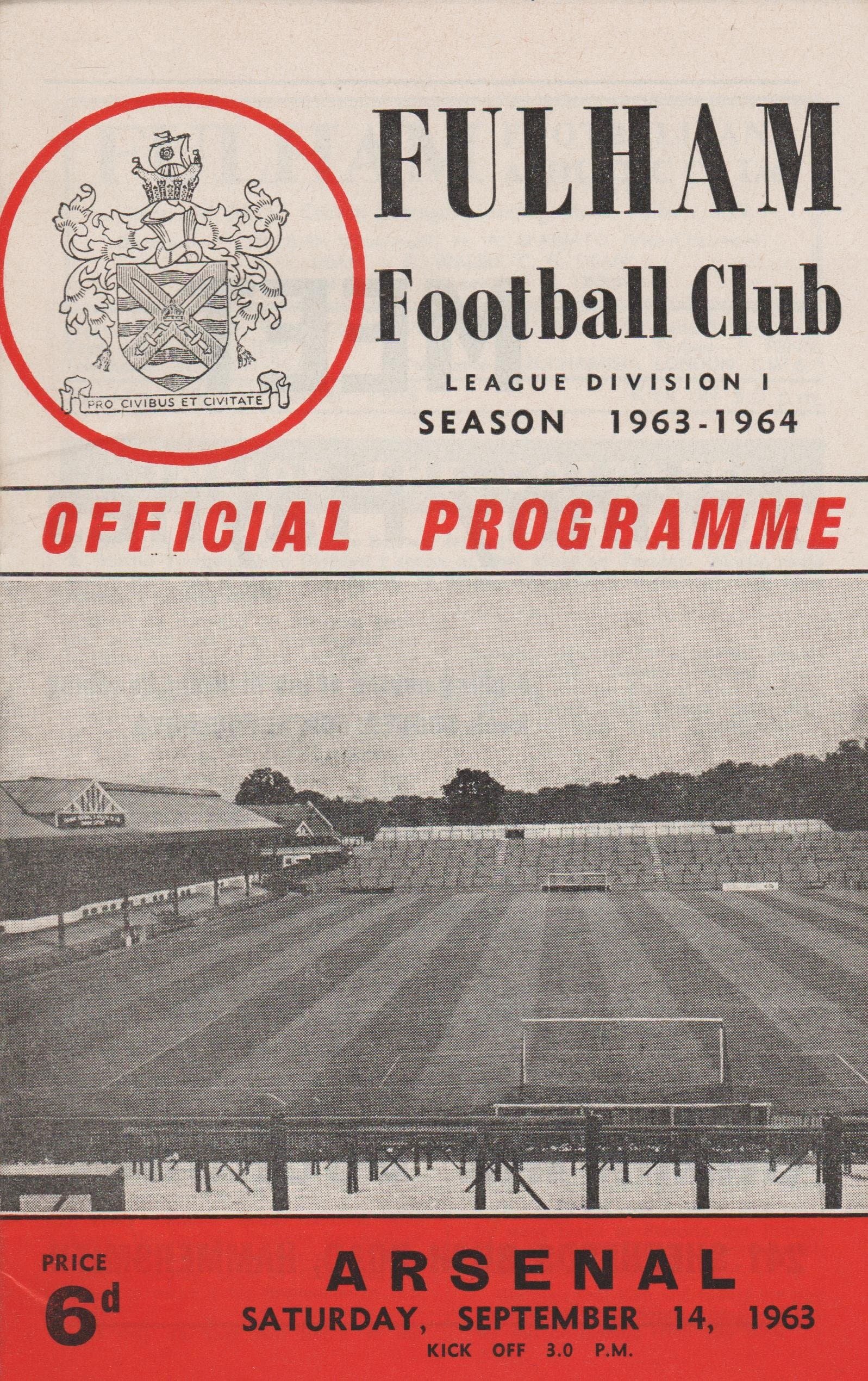 Match: Fulham v Arsenal Competition: League Division 1 Date: 14-Sep-1963 Comments: Rating: 4 Condition: Very good Weight in grams: 60