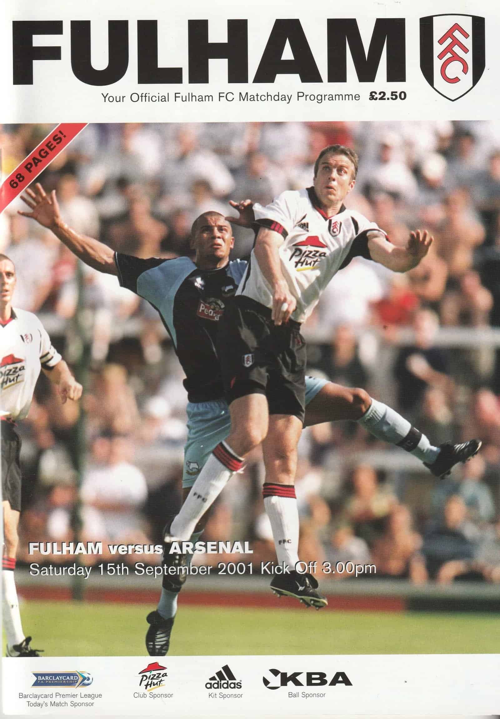 Match: Fulham v Arsenal Competition: Premiership Date: 15-Sep-2001 Comments: Rating: 4 Condition: Very good Weight in grams: 200