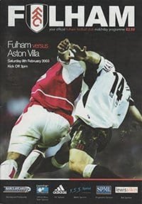 Match: Fulham v Aston Villa Competition: Premier League Date: 08-02-2003 Comments: Rating: 3 Condition: Soiling on back, small tear on back page Weight in grams: 200