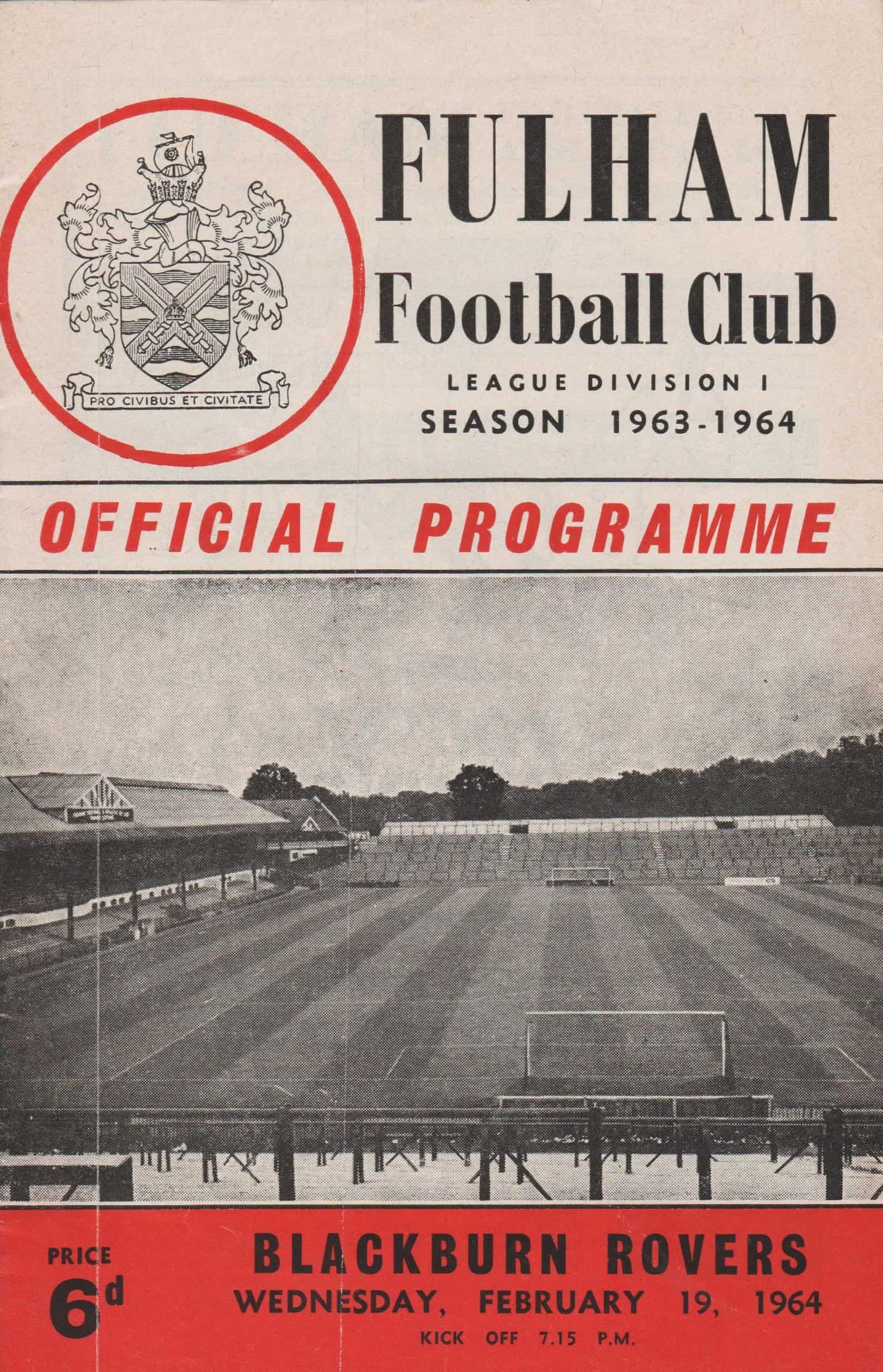 Match: Fulham v Blackburn Rovers Competition: League Division 1 Date: 19-Feb-1964 Comments: Faint fold Rating: 4 Condition: Very good Weight in grams: 60