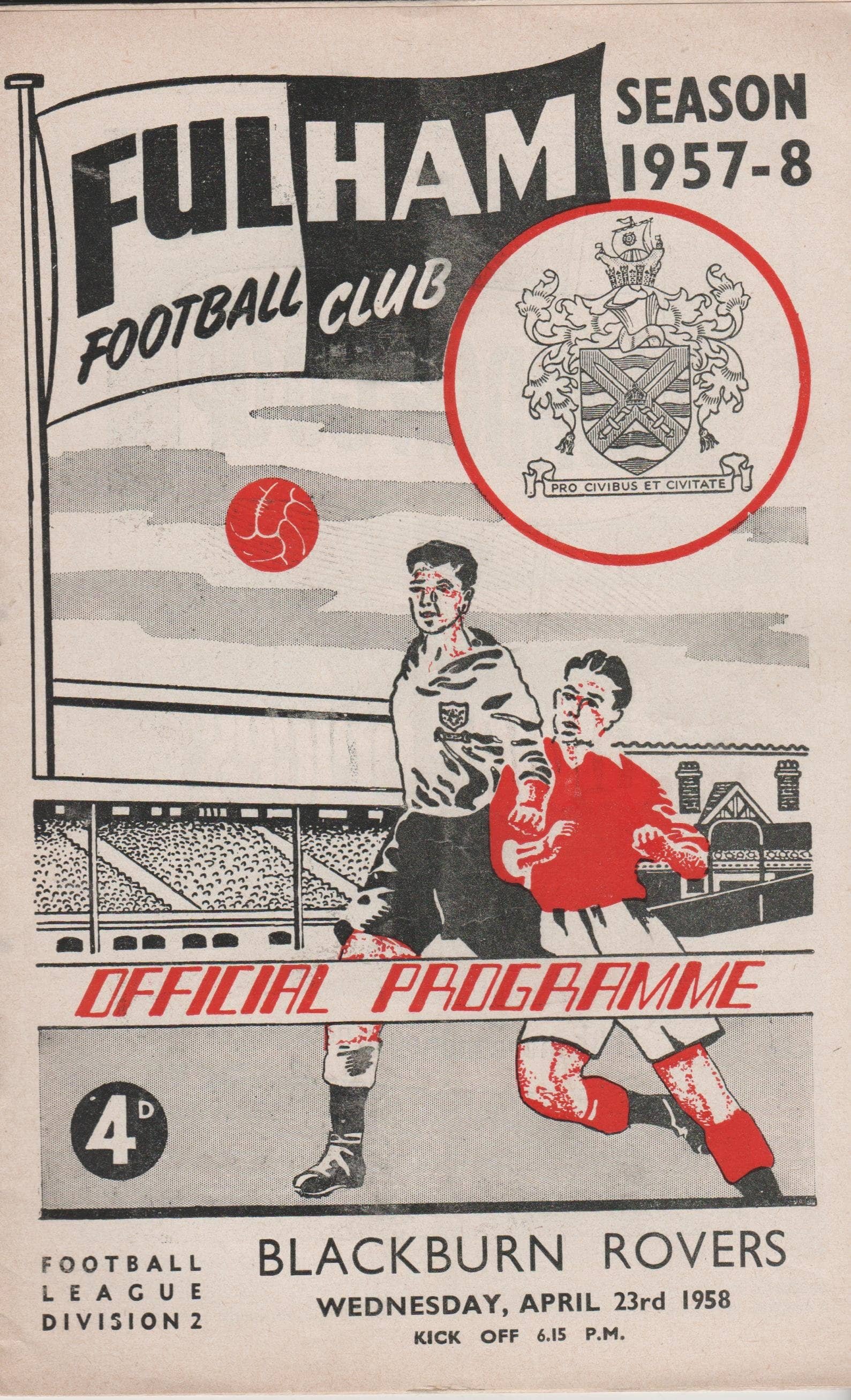 Match: Fulham v Blackburn Rovers Competition: League Division 2 Date: 23-Apr-1958 Comments: Rating: 3 Condition: Team changes, slight staple rust Weight in grams: 40