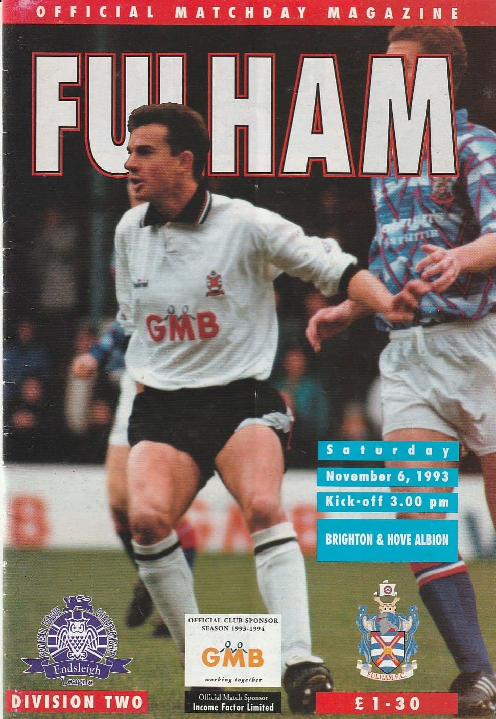 Match: Fulham v Brighton & Hove Albion Competition: League Division 2 Date: 06-11-1993 Comments: Rating: 3 Condition: Slight fold Weight in grams: 100