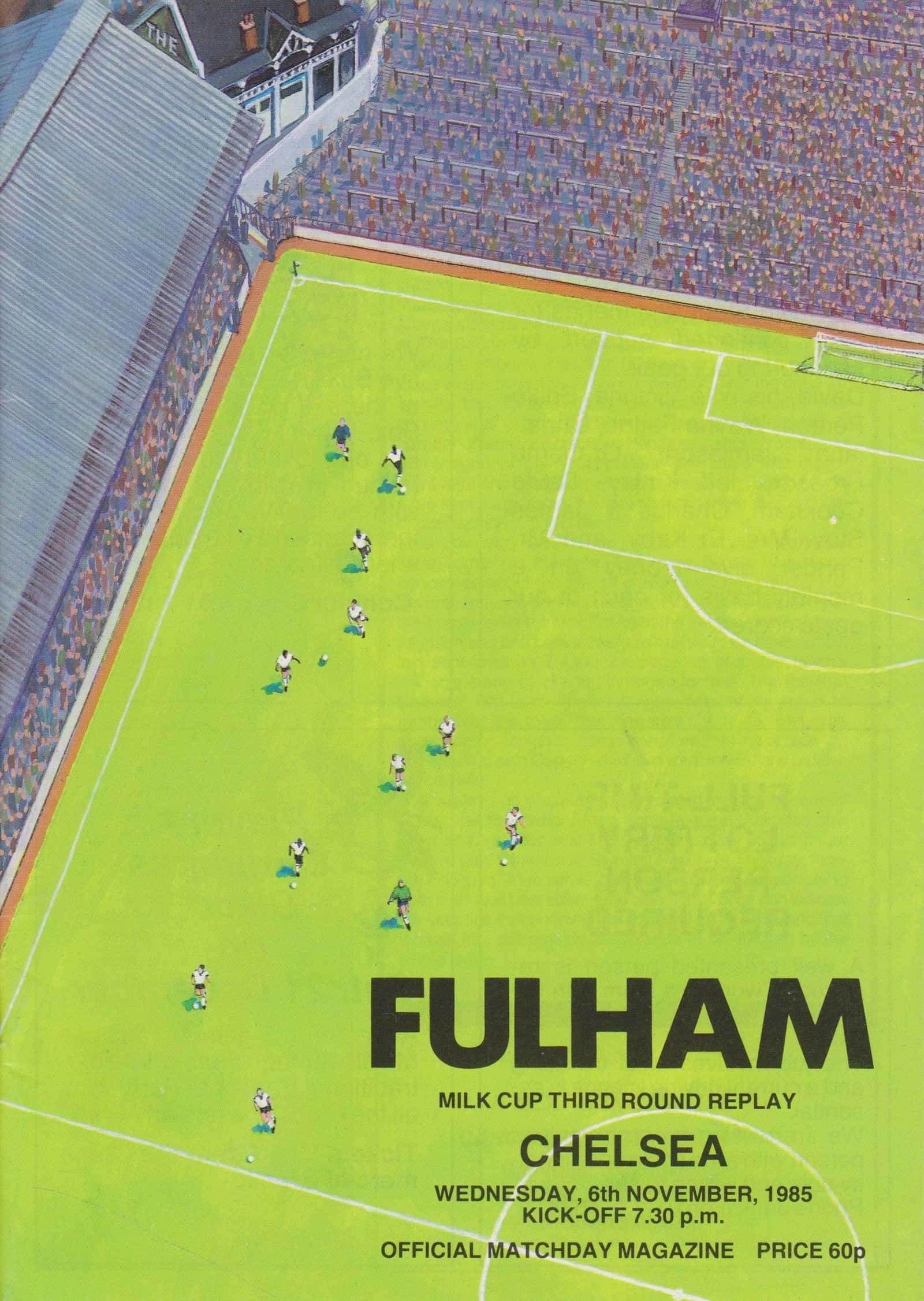 Match: Fulham v Chelsea Competition: Milk Cup 3rd Round Replay Date: 06-11-1985 Comments: Rating: 4 Condition: Faint fold Weight in grams: 60