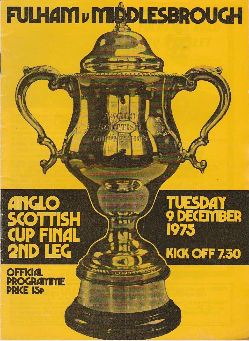 Match: Fulham v Middlesbrough Competition: Anglo Scottish Cup Final 2nd leg Date: 09-Dec-1975 Comments: Rating: 4 Condition: Slight fold Weight in grams: 100