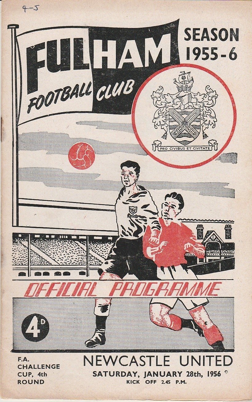 Match: Fulham v Newcastle United Competition: FA Cup 4th Round Date: 28-Jan-1956 Comments: Rating: 3 Condition: Score on face, slight fold, slight staple rust Weight in grams: 80