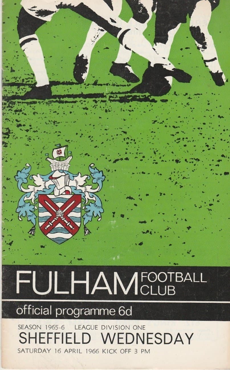 Match: Fulham v Sheffield Wednesday Competition: League Division 1 Date: 16-Apr-1966 Comments: Rating: 3 Condition: Slight fold, team change Weight in grams: 60