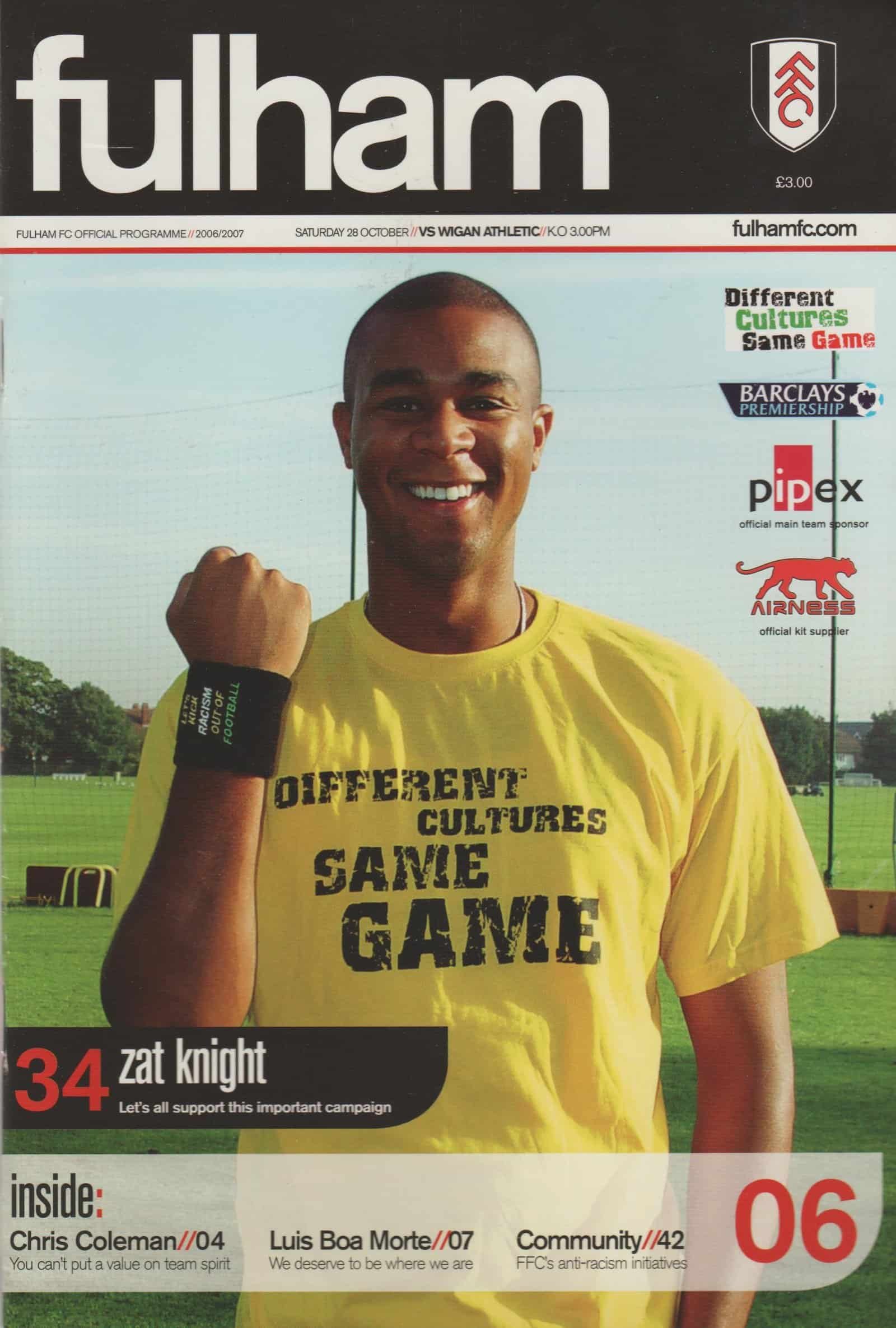 Match: Fulham v Wigan Athletic Competition: Premier League Date: 28-10-2006 Comments: Rating: 4 Condition: Very good Weight in grams: 160