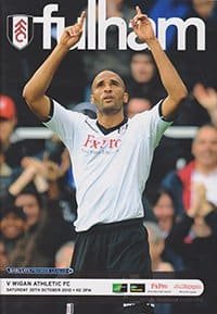 Match: Fulham v Wigan Athletic Competition: Premier League Date: 30-10-2010 Comments: Rating: 5 Condition: Excellent Weight in grams: 200