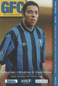 Match: Gillingham v Brighton and Hove Albion Competition: Worthington Cup 1st Round 2nd leg Date: 24-08-1999 Comments: Rating: 4 Condition: Very good Weight in grams: 120