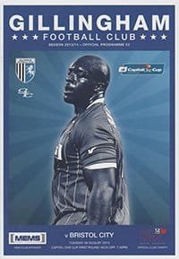 Match: Gillingham v Bristol City Competition: Capital One Cup 1st Round Date: 06-08-2013 Comments: Rating: 5 Condition: Excellent Weight in grams: 100