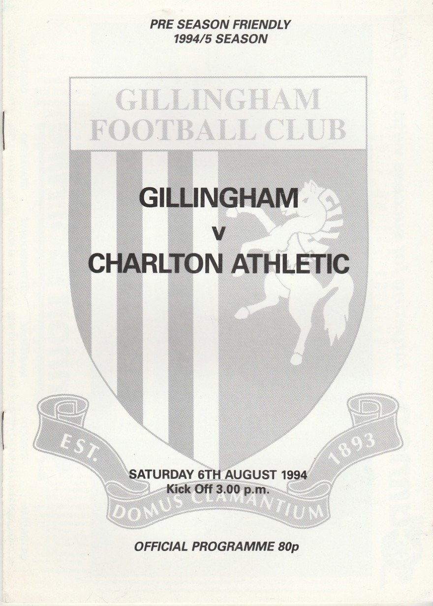 Match: Gillingham v Charlton Athletic Competition: Friendly Date: 06-Aug-1994 Comments: Rating: 4 Condition: Very good Weight in grams: 80