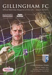 Match: Gillingham v Cheltenham Town Competition: League 2 Date: 07-08-2010 Comments: Rating: 5 Condition: Excellent Weight in grams: 140