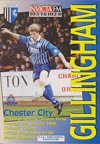 Match: Gillingham v Chester City Competition: League Division 3 Date: 09-01-1996 Comments: Rating: 5 Condition: Excellent Weight in grams: 100