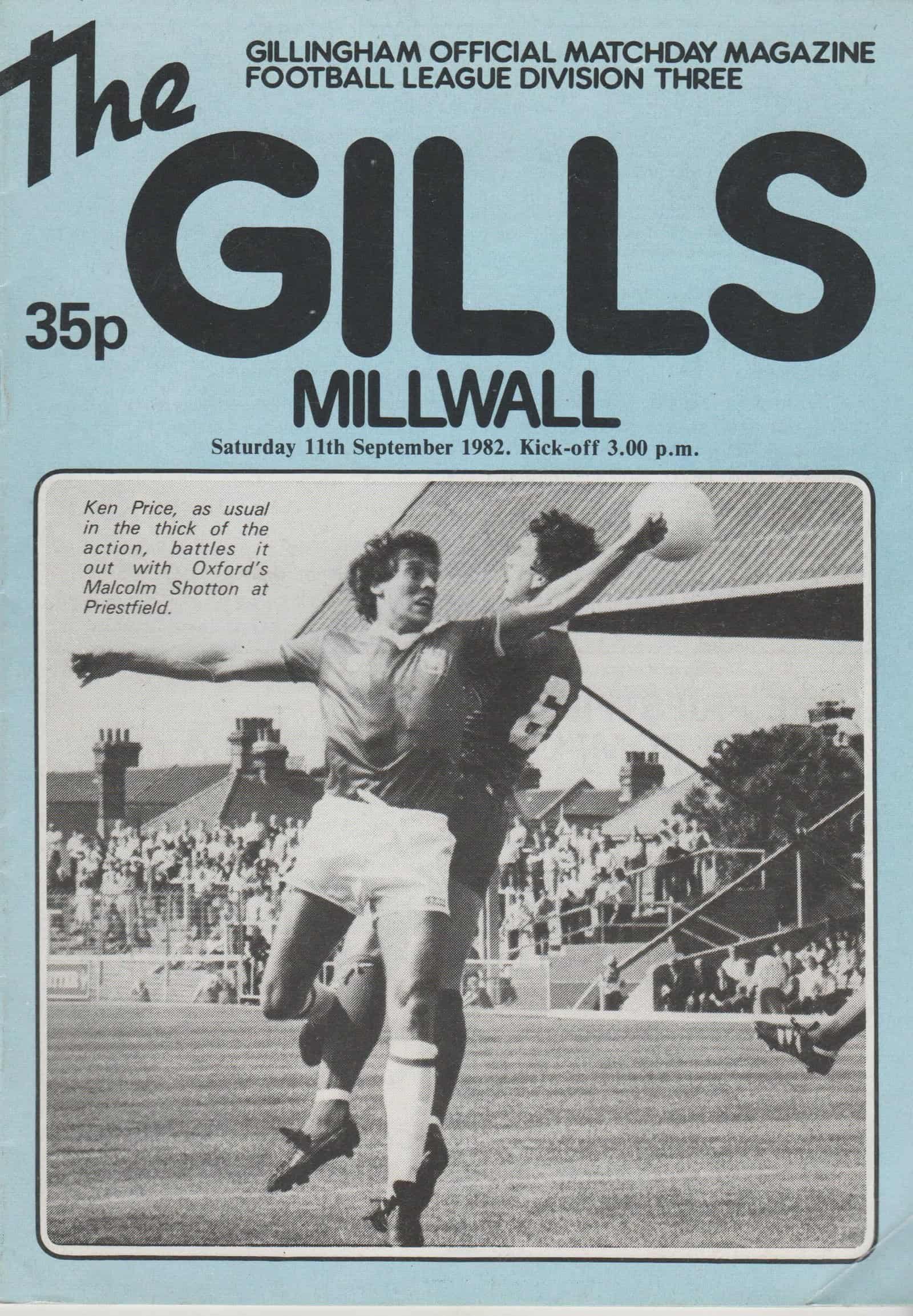 Match: Gillingham v Millwall Competition: League Division 3 Date: 11-Sep-1982 Comments: Rating: 3 Condition: Corner fold Weight in grams: 80