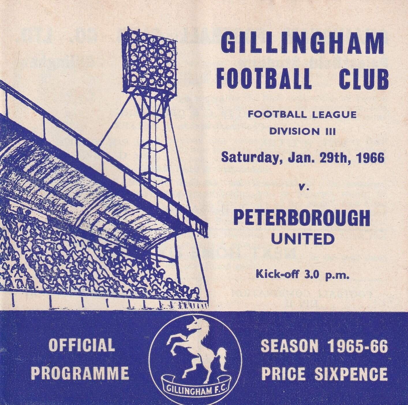 Match: Gillingham v Peterborough United Competition: League Division 3 Date: 29-Jan-1966 Comments: Rating: 4 Condition: Slight fold Weight in grams: 40
