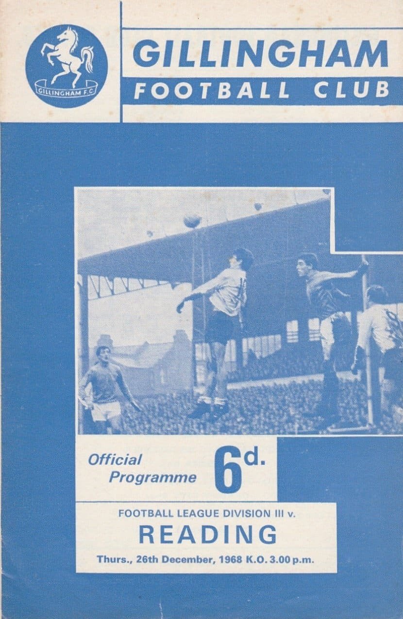 Match: Gillingham v Reading Competition: League Division 3 Date: 26-Dec-1968 Comments: Rating: 4 Condition: Very good Weight in grams: 40