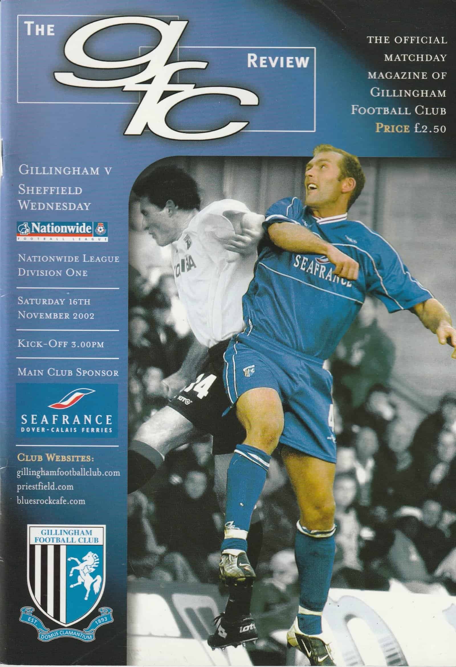 Match: Gillingham v Sheffield Wednesday Competition: League Division 1 Date: 16-11-2002 Comments: Rating: 4 Condition: Very good Weight in grams: 160