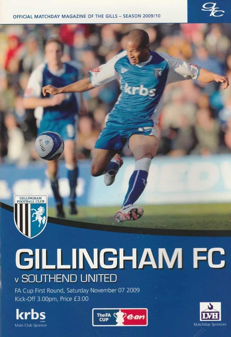 Match: Gillingham v Southend United Competition: FA Cup 1st Round Date: 07-Nov-2009 Comments: Rating: 4 Condition: Very good Weight in grams: 240