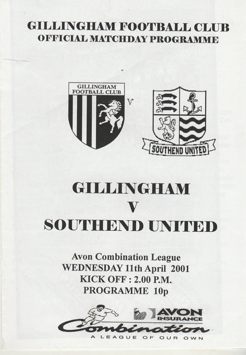 Match: Gillingham v Southend United Competition: Avon Combination Date: 11-Apr-2001 Comments: Rating: 4 Condition: Very good Weight in grams: 40