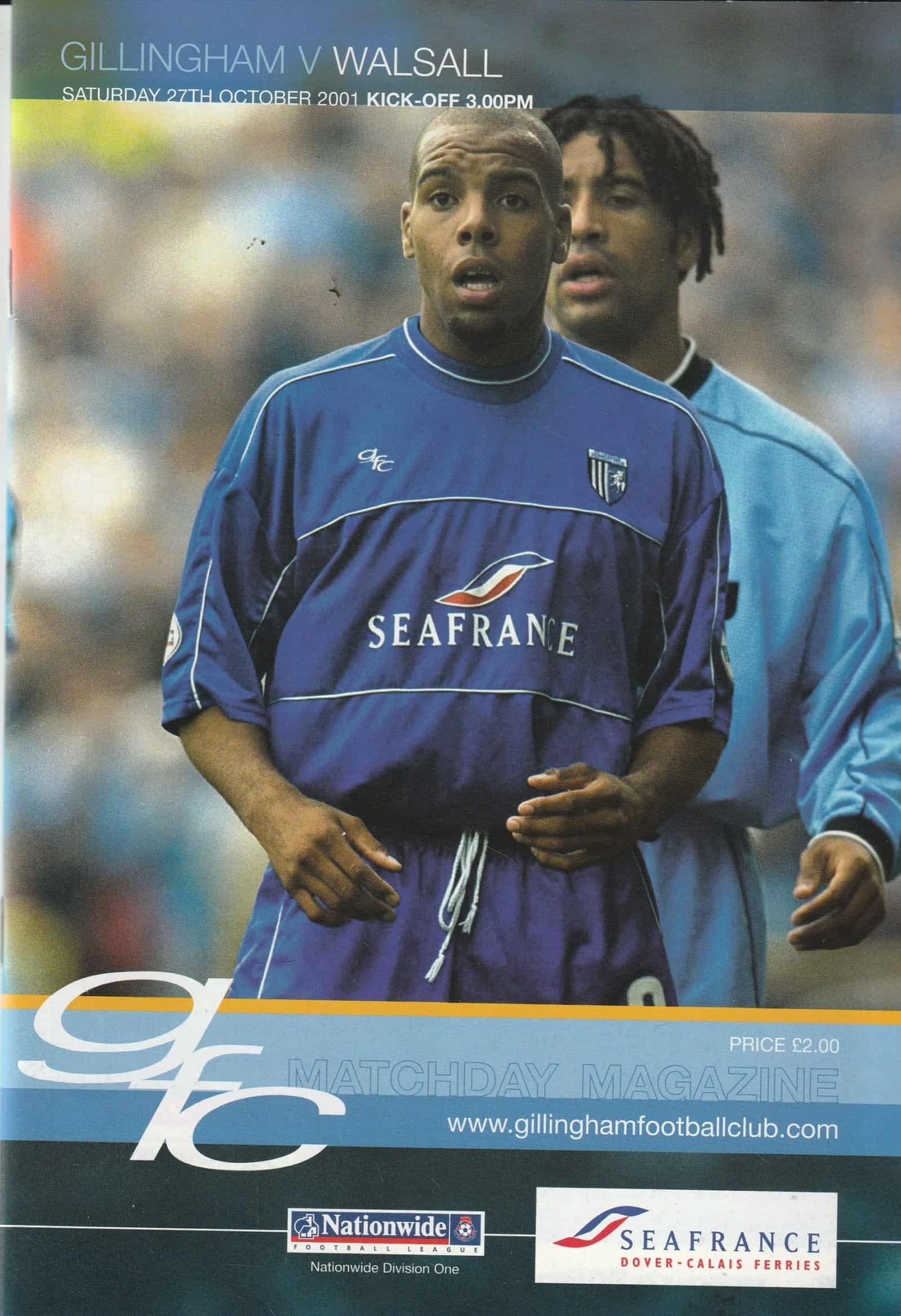 Match: Gillingham v Walsall Competition: League Division 1 Date: 27-Oct-2001 Comments: Rating: 4 Condition: Very good Weight in grams: 180