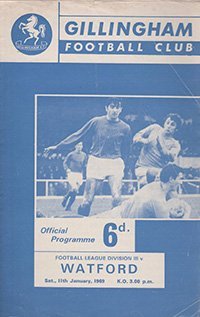Match: Gillingham v Watford Competition: League Division 3 Date: 11-01-1969 Comments: Rating: 3 Condition: Folds on cover Weight in grams: 40