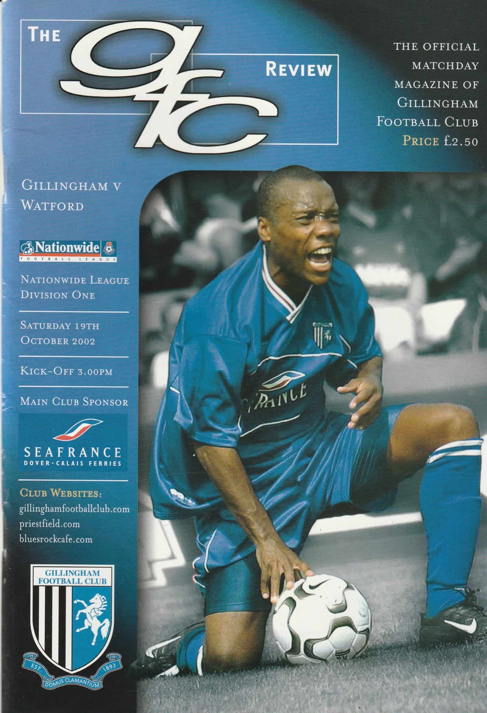 Match: Gillingham v Watford Competition: League Division 1 Date: 19-10-2002 Comments: Rating: 5 Condition: Excellent Weight in grams: 180