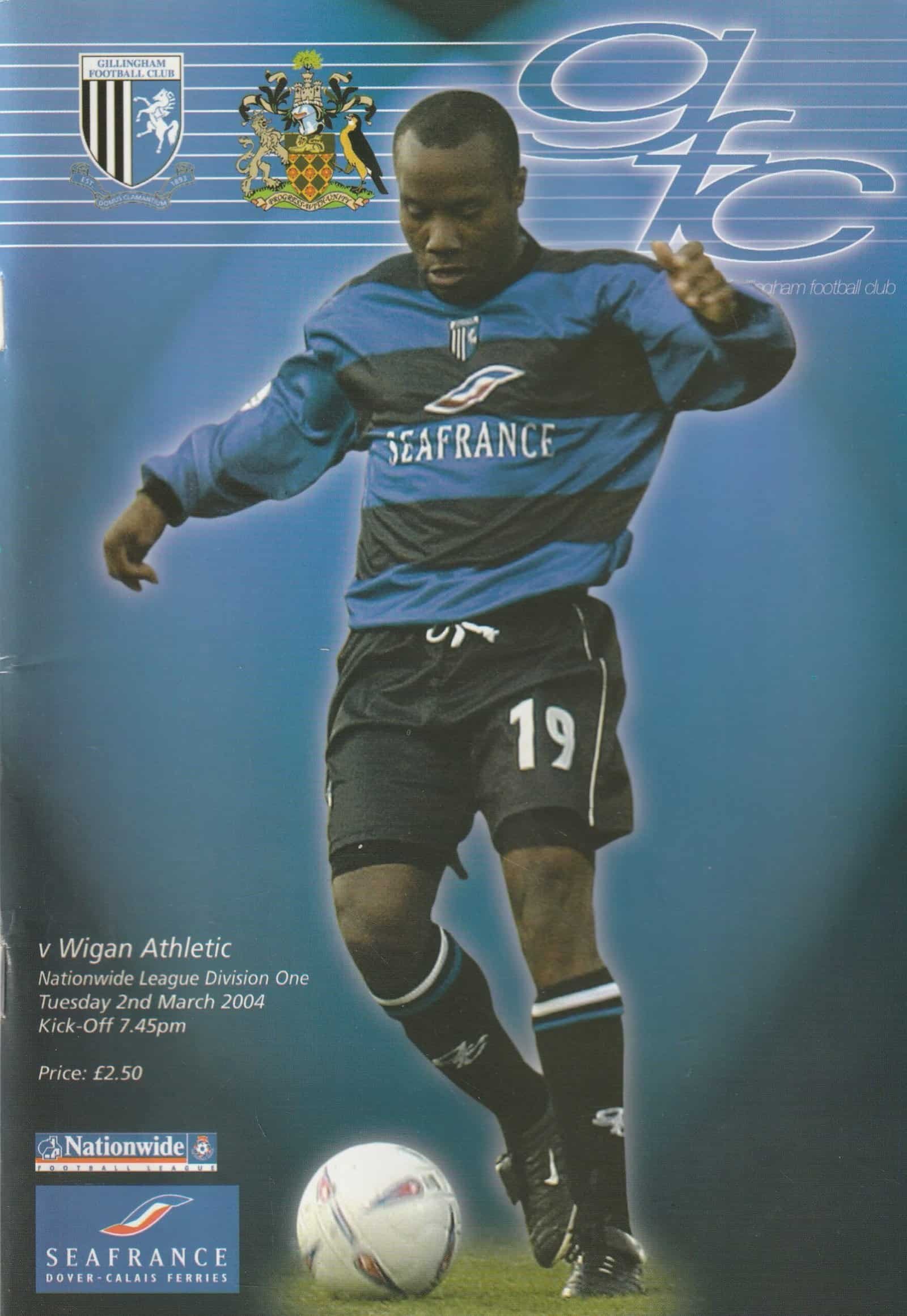 Match: Gillingham v Wigan Athletic Competition: League Division 1 Date: 02-03-2004 Comments: Rating: 5 Condition: Excellent Weight in grams: 180
