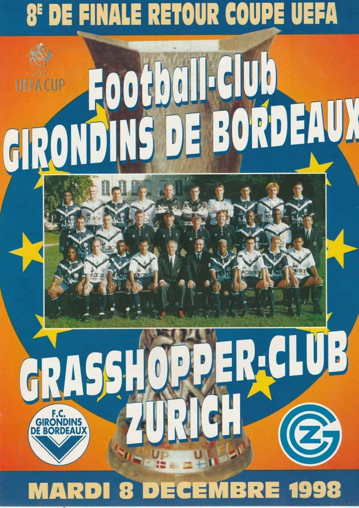 Match: Girondins Bordeaux v Grasshoppers Zurich Competition: UEFA Cup 3rd Round 2nd leg Date: 08-Dec-1998 Comments: 4 page issue Rating: 4 Condition: Very good Weight in grams: 100