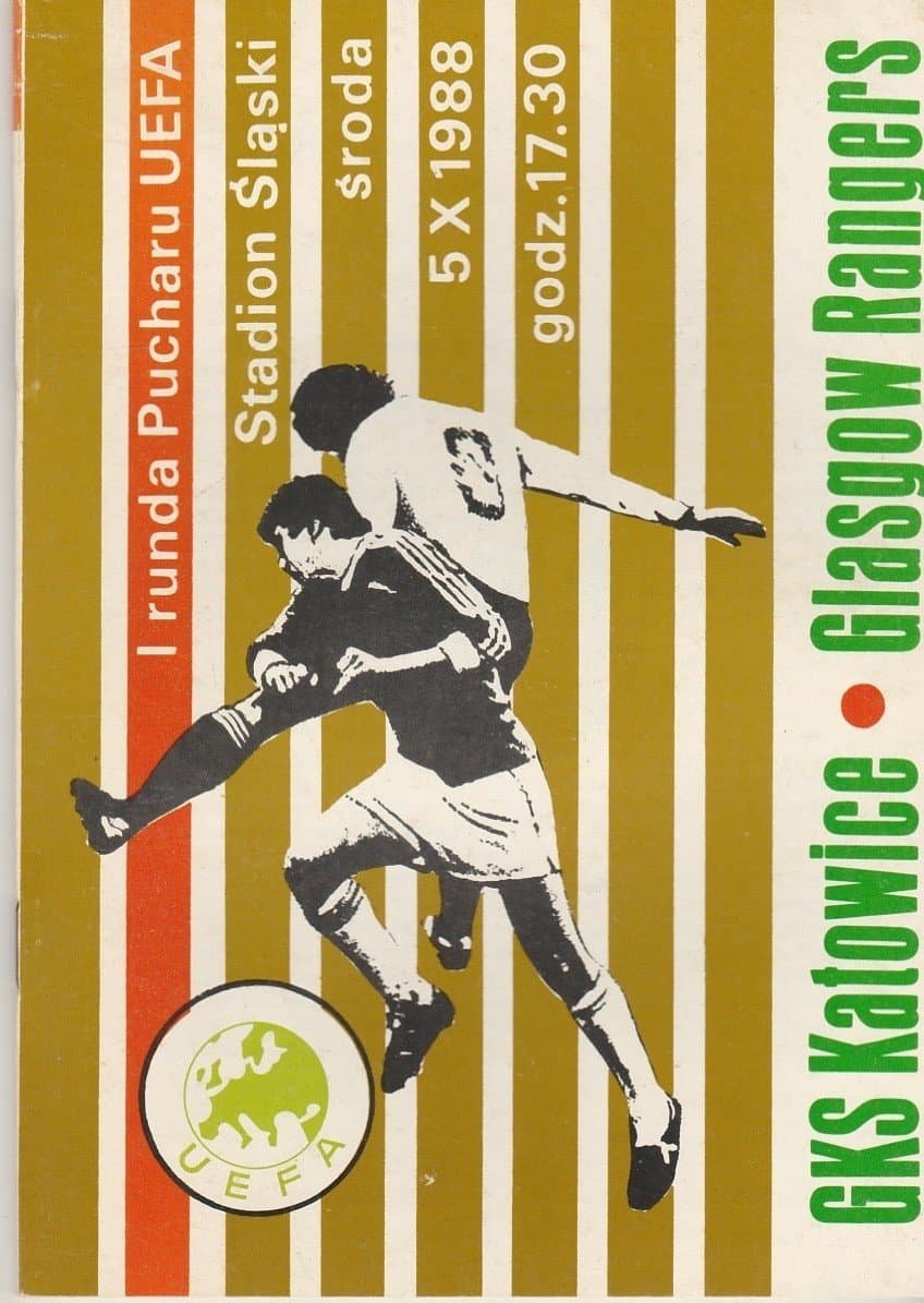 Match: GKS Katowice v Glasgow Rangers Competition: UEFA Cup 2nd Round 2nd leg Date: 05-Oct-1988 Comments: Rating: 4 Condition: Very good Weight: 80grams