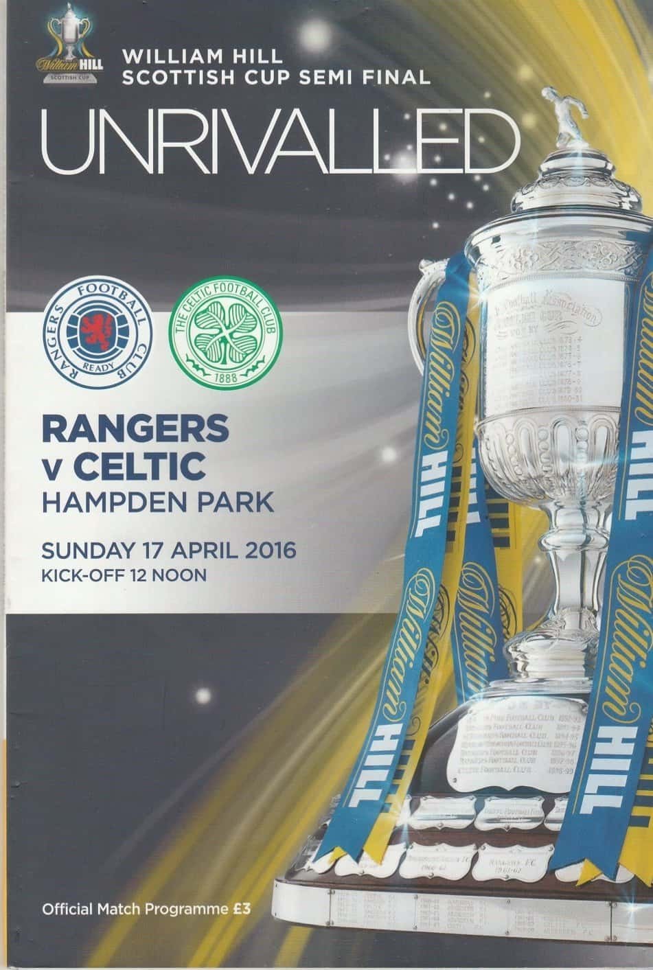 Match: Glasgow Celtic v Glasgow Rangers Competition: Scottish FA Cup Semi Final Date: 17-Apr-2016 Comments: Rating: 4 Condition: Very good Weight in grams: 200