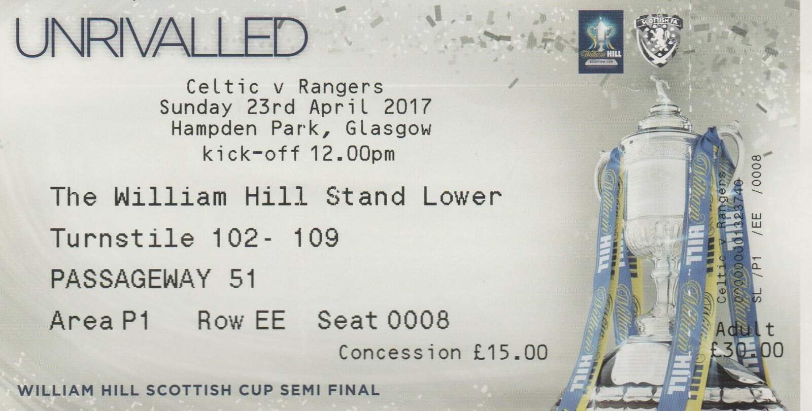 Match: Glasgow Celtic v Glasgow Rangers Competition: Scottish FA Cup Final Date: 23-Apr-2017 Comments: Rating: 4 Condition: Faint fold Weight in grams: 10
