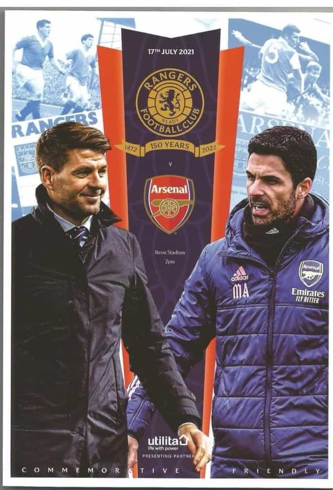 Match: Glasgow Rangers v Arsenal Competition: Friendly Date: 17-Jul-2021 Comments: Rating: 4 Condition: Very good Weight in grams: 300