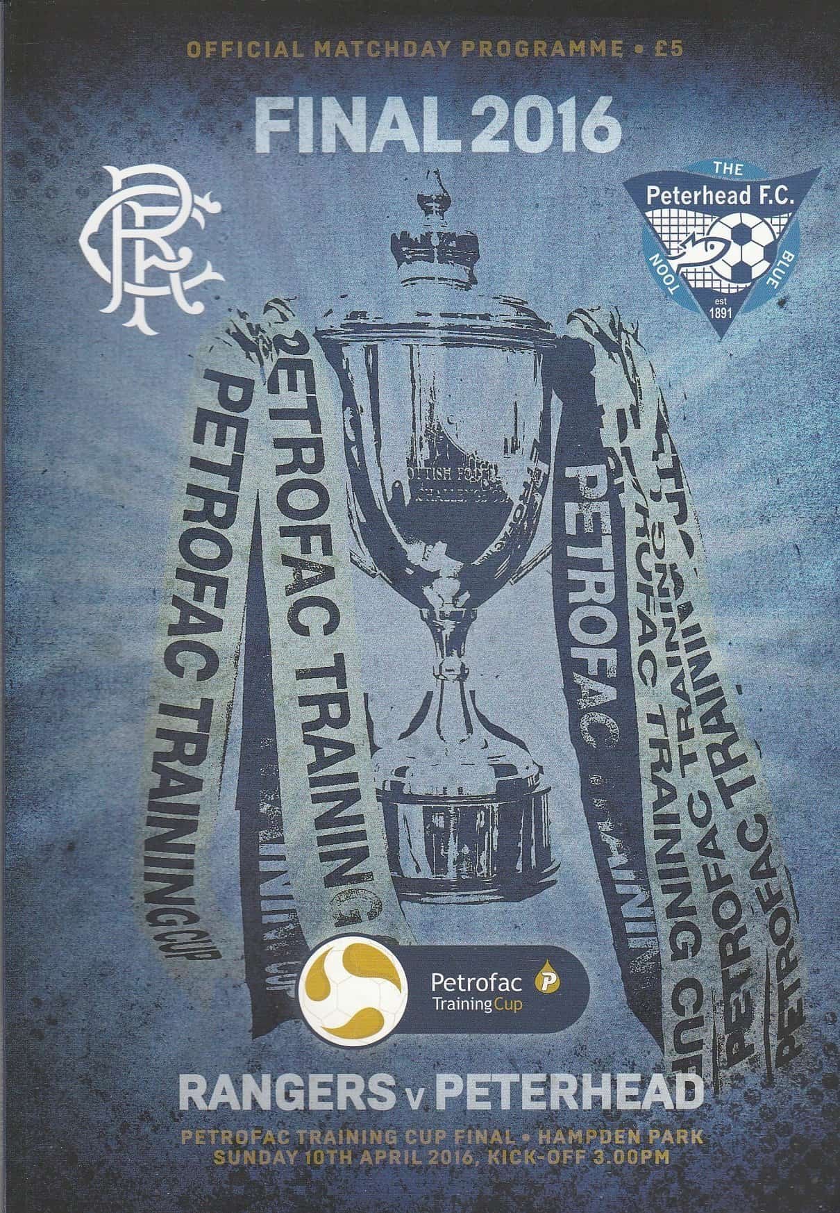 Match: Glasgow Rangers v Peterhead Competition: Scottish Challenge Cup Final Date: 10-Apr-2016 Comments: Rating: 4 Condition: Very good Weight in grams: 600