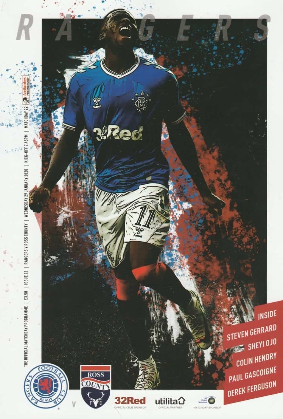 Match: Glasgow Rangers v Ross County Competition: Scottish Premier League Date: 29-Jan-2020 Comments: Rating: 4 Condition: Very Good Weight in grams: 200
