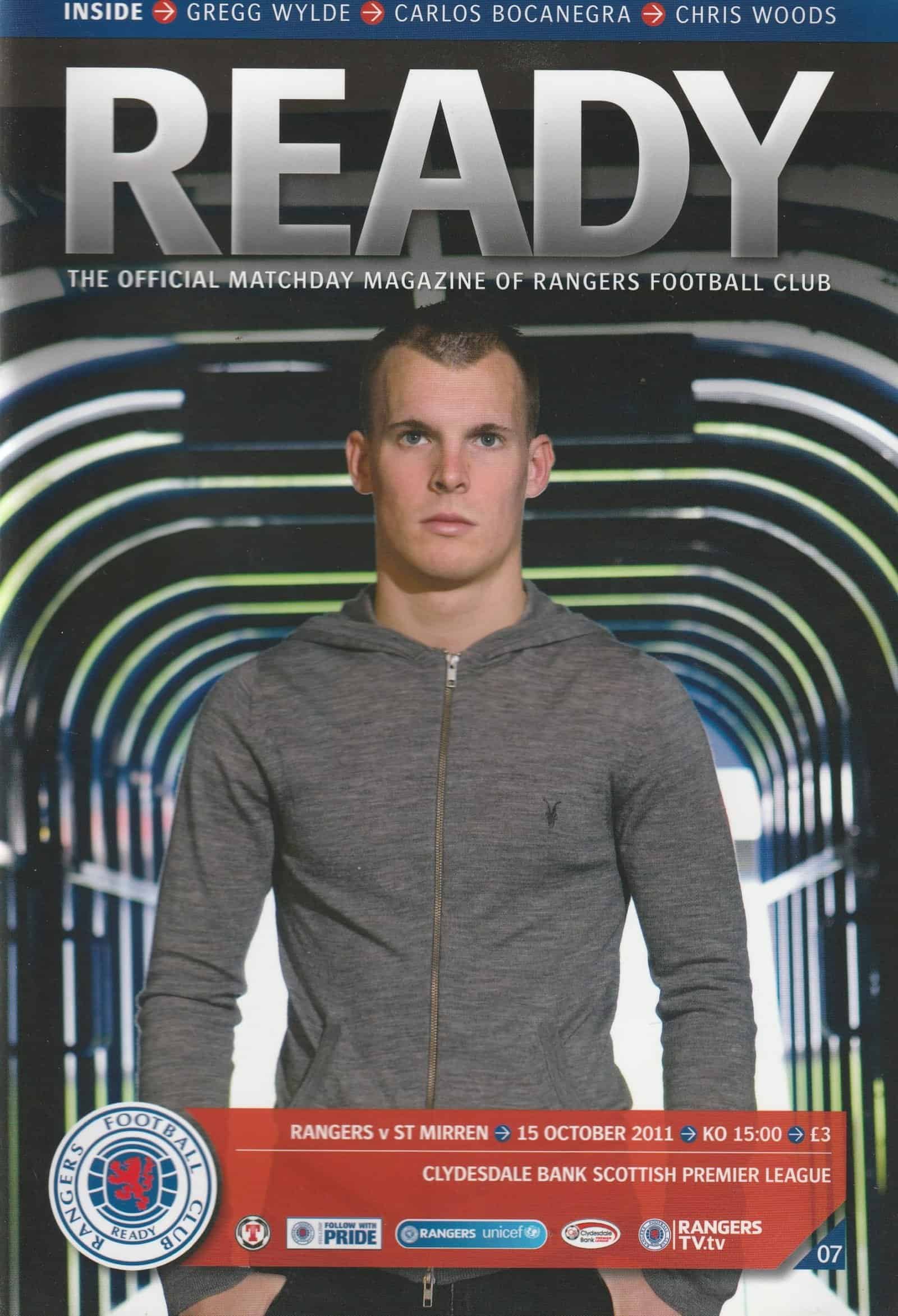 Match: Glasgow Rangers v St Mirren Competition: Scottish Premier League Date: 15-Oct-2011 Comments: Rating: 4 Condition: Very Good Weight in grams: 200