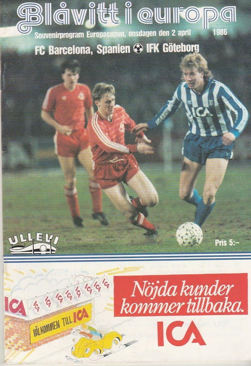 Match: Gothenburg v Barcelona Competition: European Cup Semi Final 1st leg Date: 02-Apr-1986 Comments: Rating: 4 Condition: Very good Weight in grams: 120